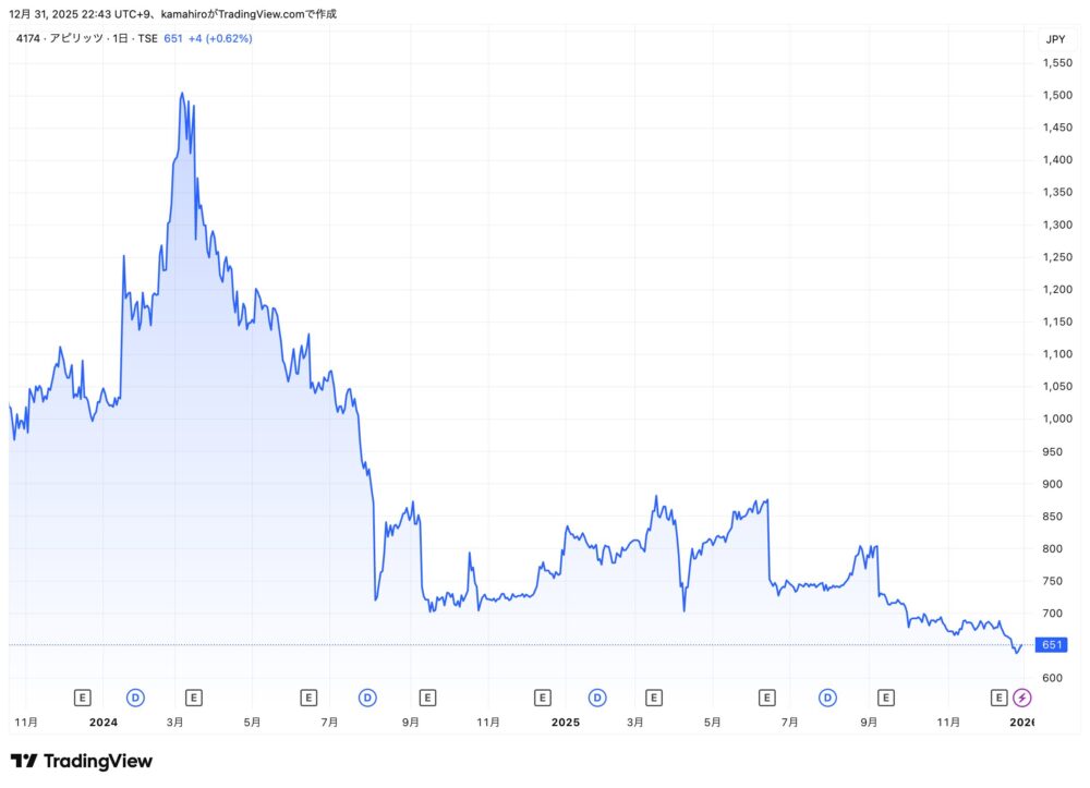 運営会社の株価推移|アピリッツ